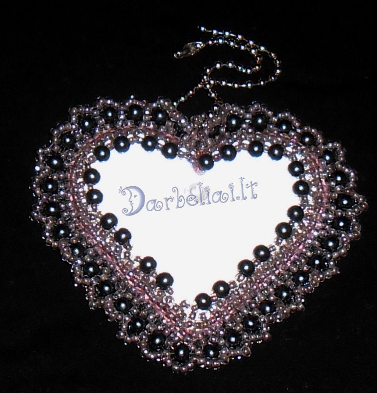 Atšvaitas, biseris,stikliniai perliukai <br/>Dydis 7,5 x 6,5 cm ( be grandinėlės)