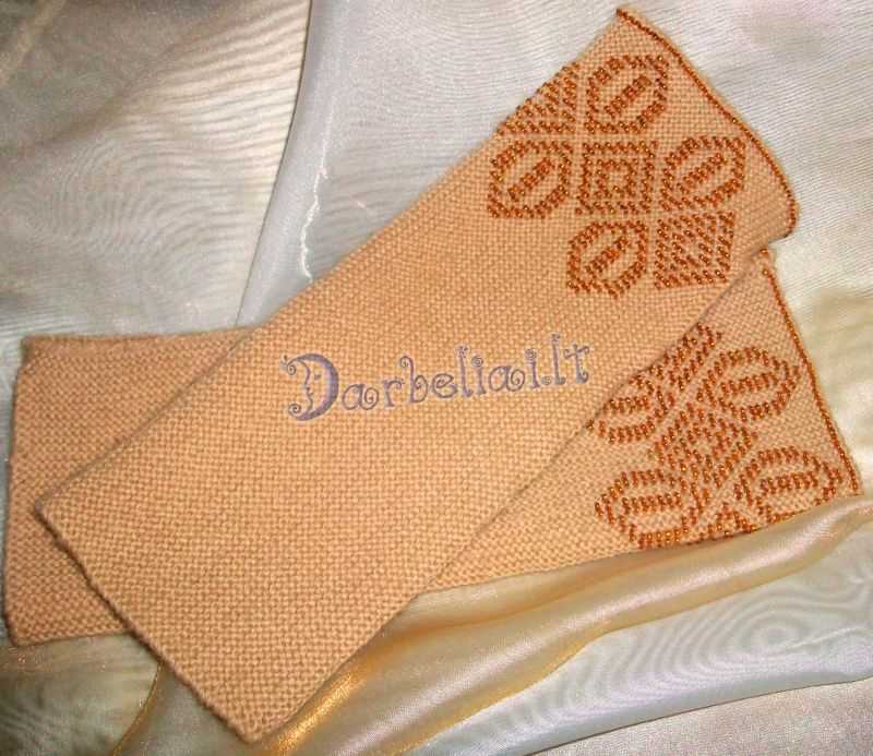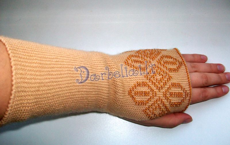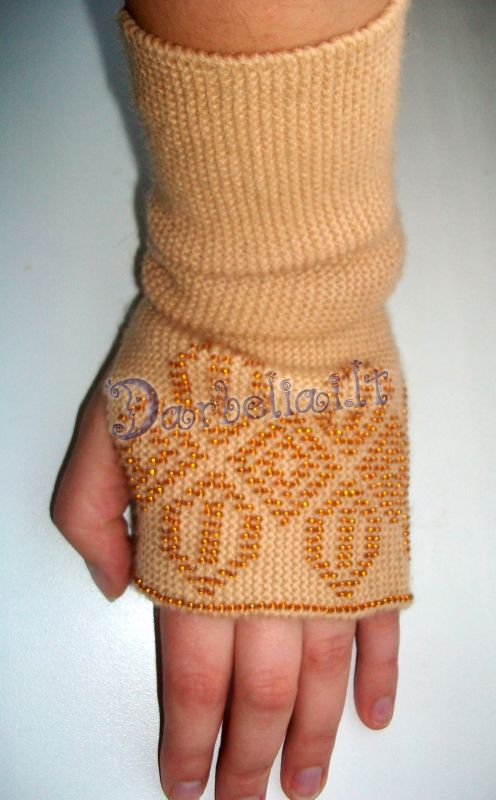 Čekiškas biseris, vilna 100proc,įpatingai ilgos ir šildančios riešus.Gaminu pagal užsakymus,tad galima pasirinkti spalvą.